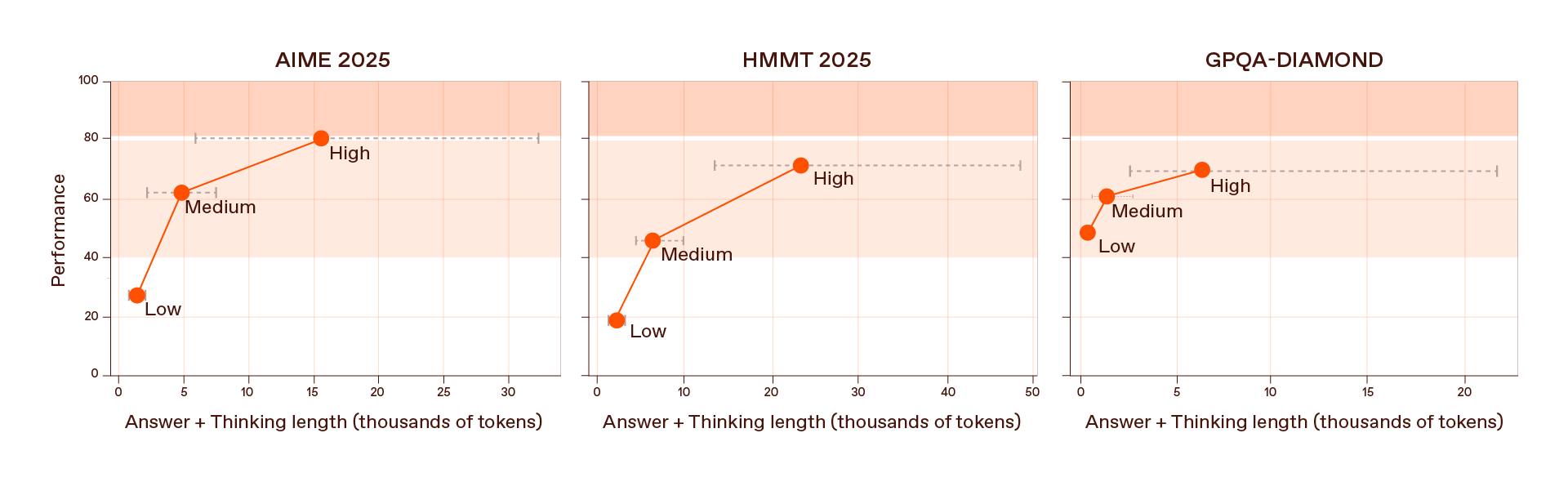 But the lower-effort settings matter just as much. Even with only a few hundred additional reasoning tokens, the low-effort mode often boosts answer quality dramatically, offering an efficient, cost-effective reasoning profile for many real-world applications. Medium effort consistently strikes a balance between accuracy and token efficiency, while high effort serves as the model’s full-power setting for the most demanding problems.